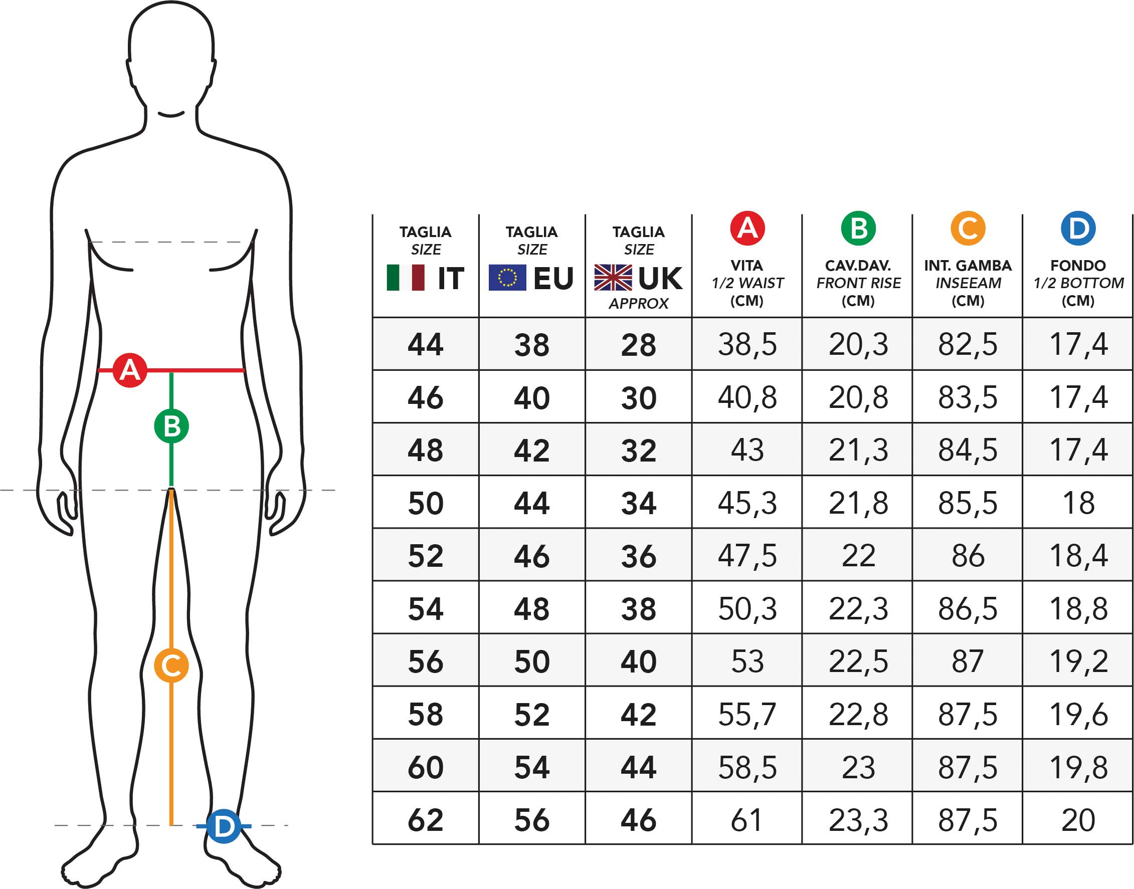 -Tessuto blue denim stretch 11OZ -Tasca dietro a toppa impuntura decorativa ai lati -Tasca davanti a giro con quinto taschino con fettuccia in contrasto -Impunture esterne con filo in contrasto -Interno fodera fantasia -Salpa logata Il Granchio a passante in tono -Lavaggio stone medio leggero used