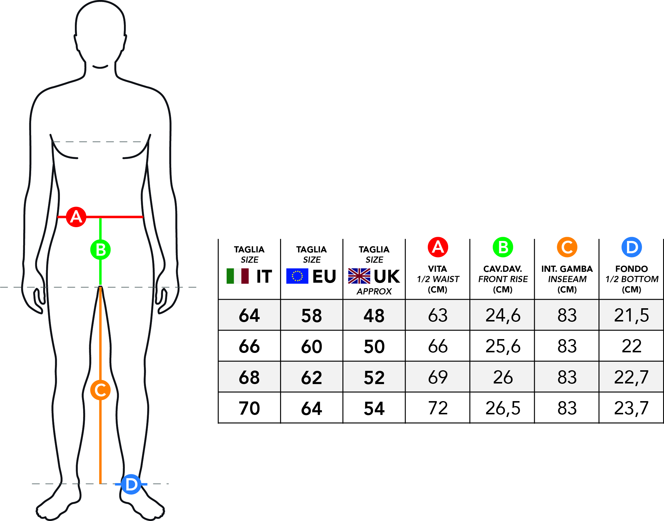 -Tasche davanti chinos con doppia impuntura -Taschino su tasca davanti destra, con mostra in contrasto -Filetto tasca dietro destro con fettuccia -Travette in contrasto tra pinces sul dietro -Fodera interna caratterizzata da un mix di fodere